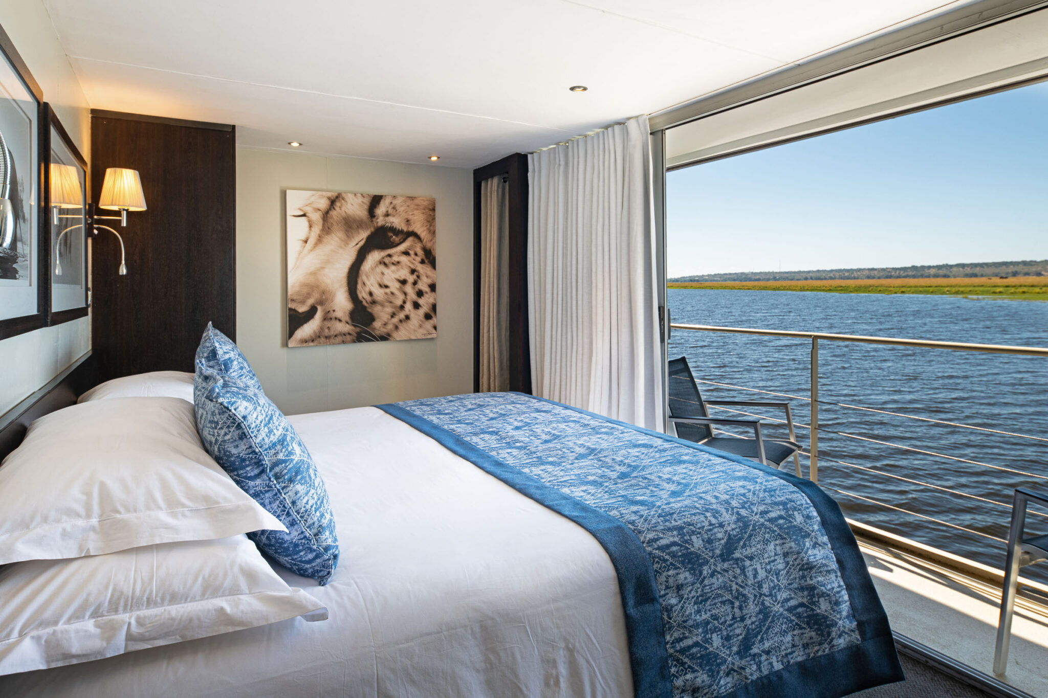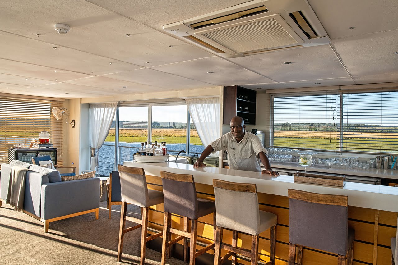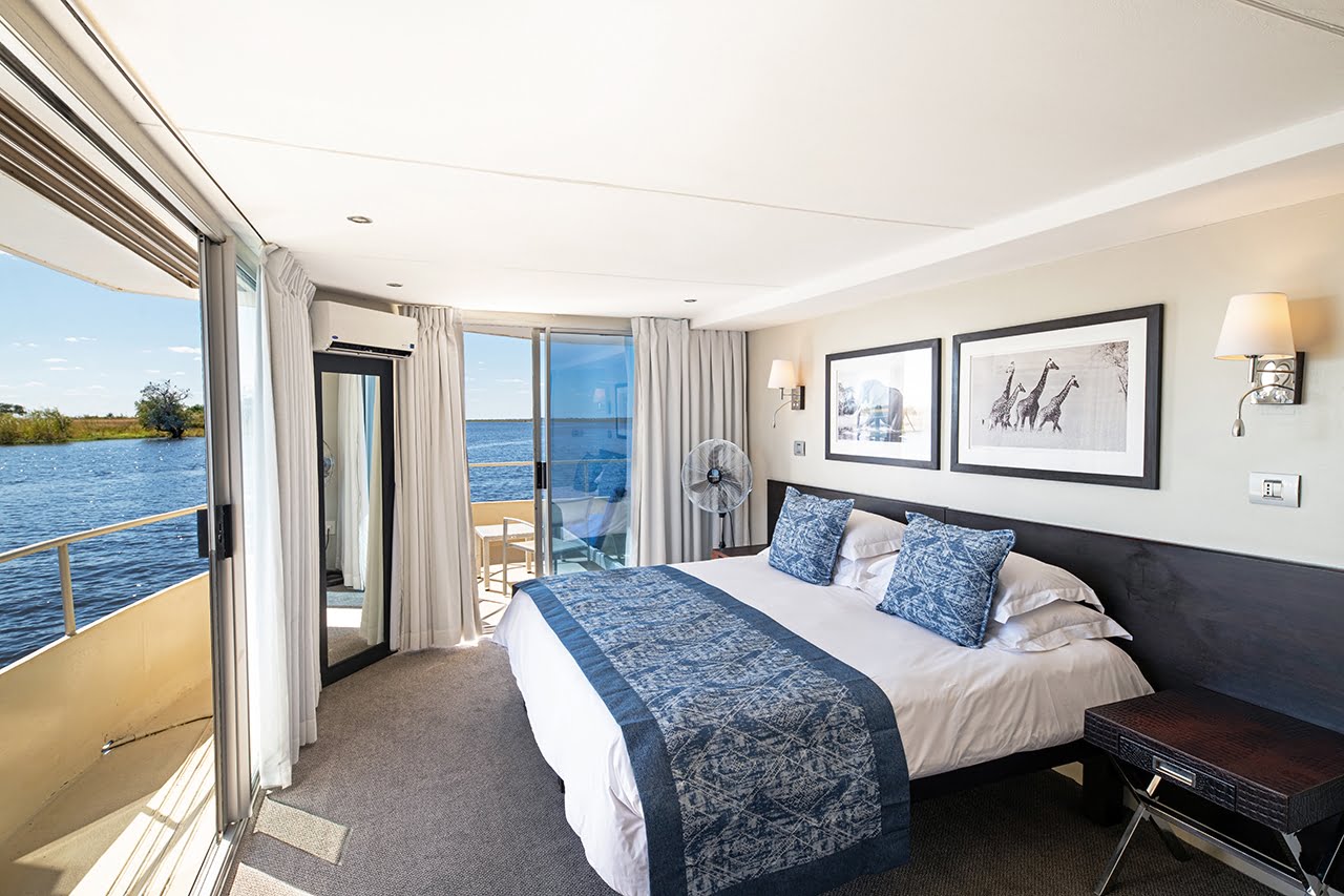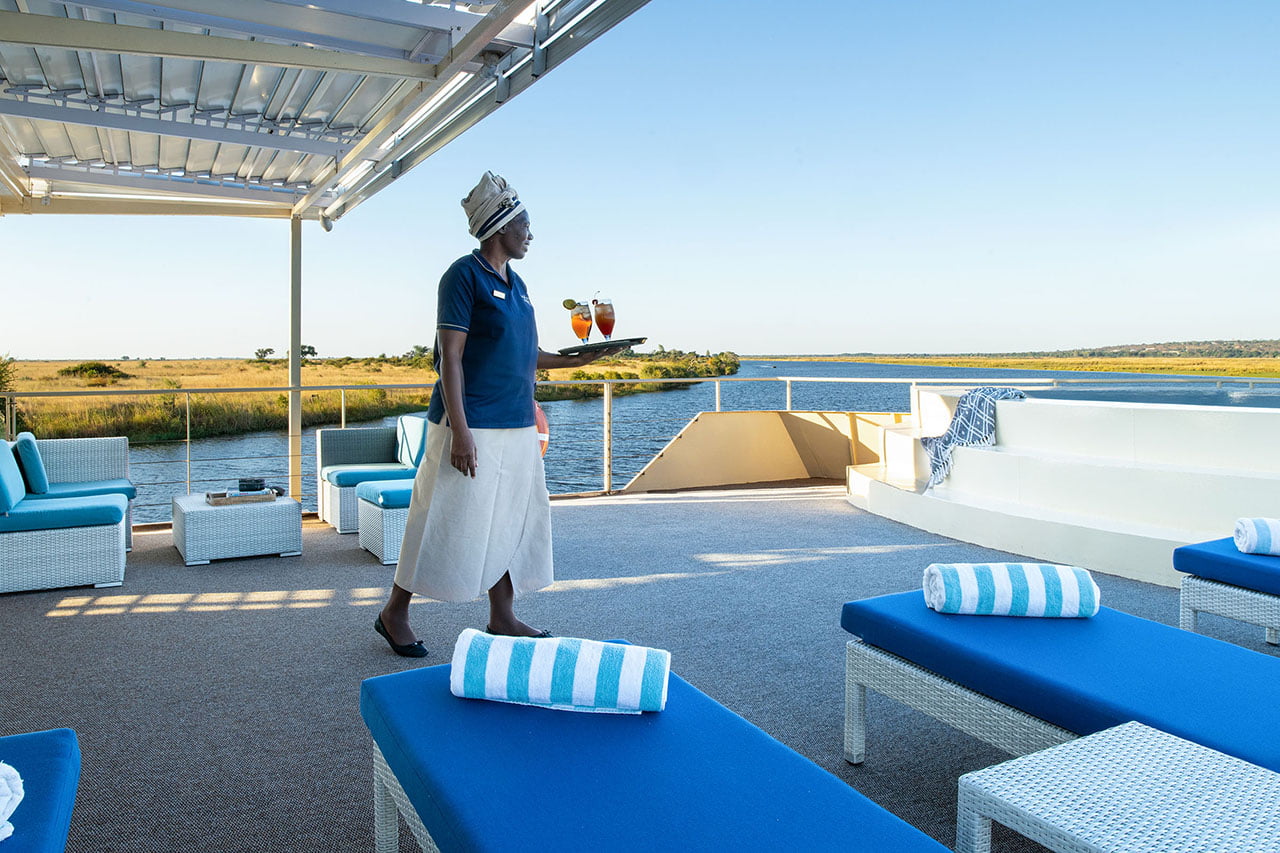 The Zambezi Queen is a 5 star, luxury houseboat offering unparalleled sophistication as it glides along the Chobe River, Botswana; one of the most remote locations in Africa. This stylish river safari holiday is truly unique. Imagine waking up to the sight of a herd of elephant on the river bank or sipping a Gin & Tonic as you float along the bank, watching the sun set over this magical wilderness; home to buffalo, leopard, lion, elephant, antelope and birdlife. A trip on a tender boat takes you up close and personal to the animals as they graze peacefully along the river bank. Guests can enjoy a two, three or four night scheduled journey.
